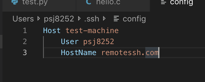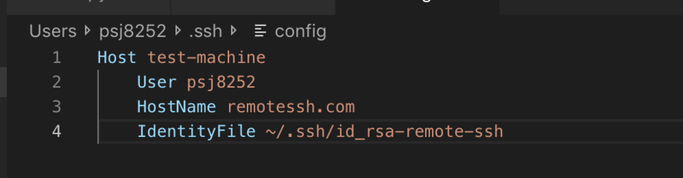 아까 비밀키가 ~/.ssh/id_rsa 였죠? 이제 vscode에서 위에서 설명한 config 창을 열어봅시다.