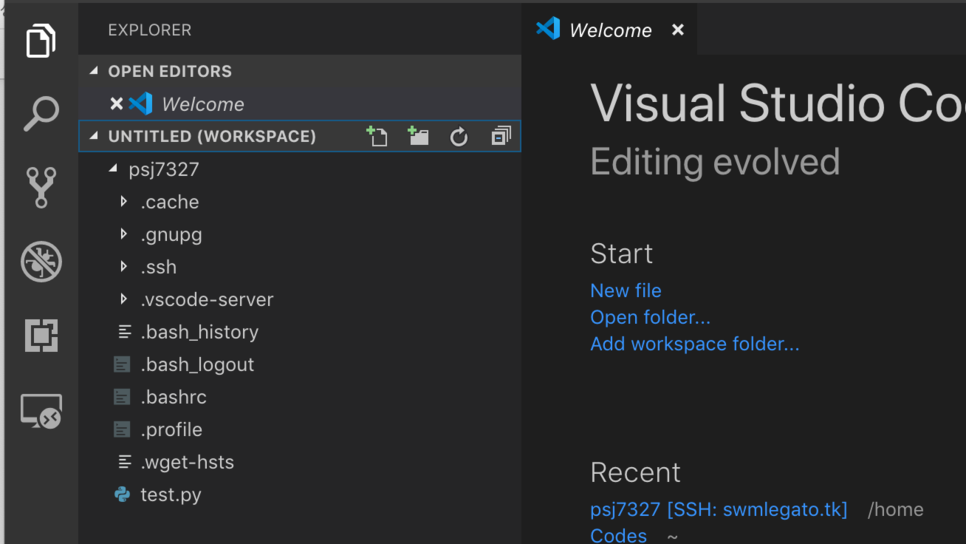 로컬에서 했던 것 처럼 사용할 수 있습니다. 새 파일을 만들거나 수정할 수도 있고, 디버깅 등도 가능합니다.