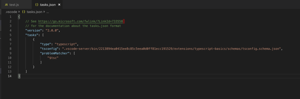 이런 식으로 tasks.json이 열리는데 이걸 수정해서 사용하면 됩니다.