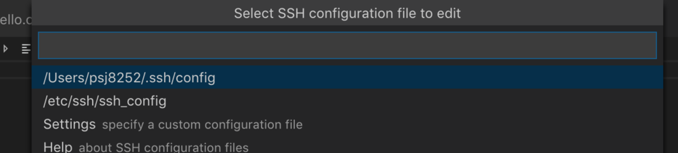 Remote-SSH: Connect to Host... 를 누르면 이렇게 나왔는데