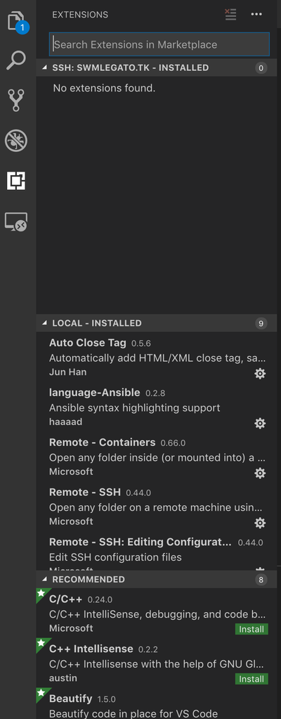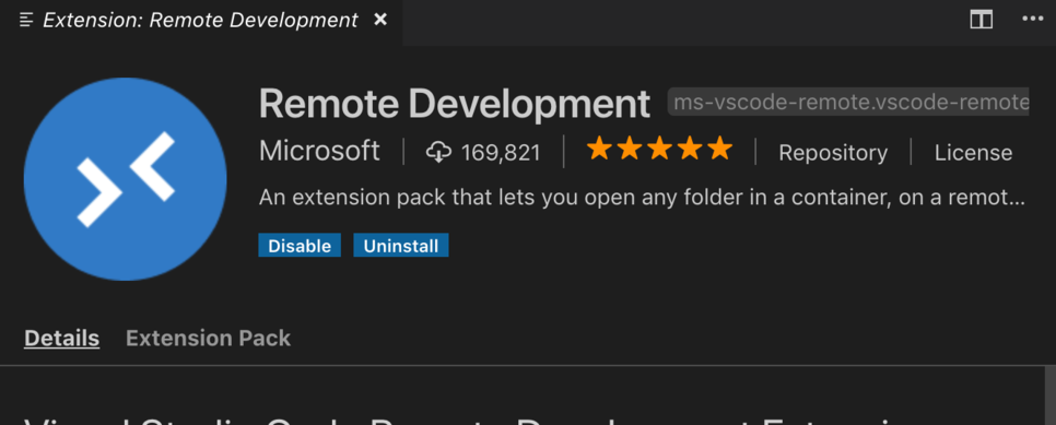 이렇게 로컬과 리모트의 확장 프로그램이 따로 보입니다.